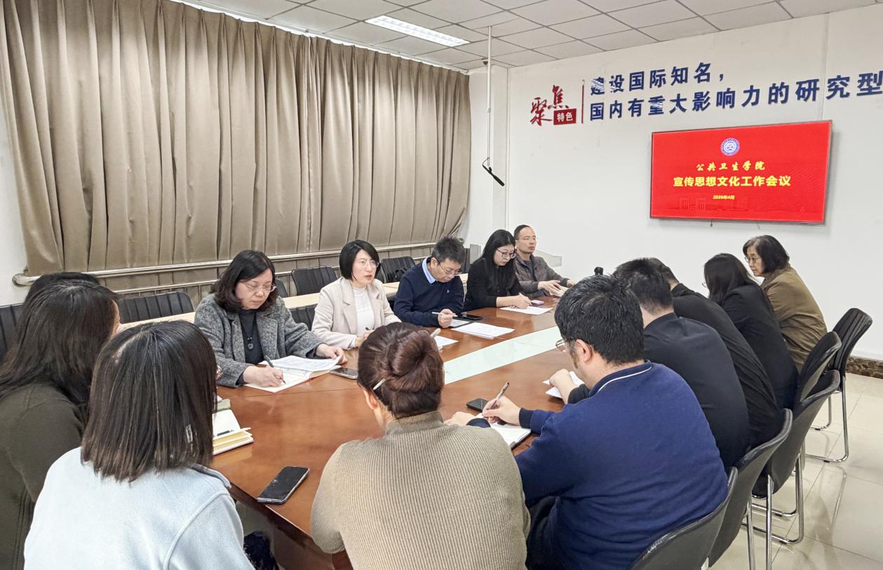 4月1日下午,公共卫生学院在浩园医学教育综合楼会议室召开宣传思想文化工作会议,回顾总结前期工作,安排部署重点任务。学院党政领导班子成员、党支部书记、系主任及骨干教师代表共同参加会议,公共卫生学院党委书记贾依娜主持会议。